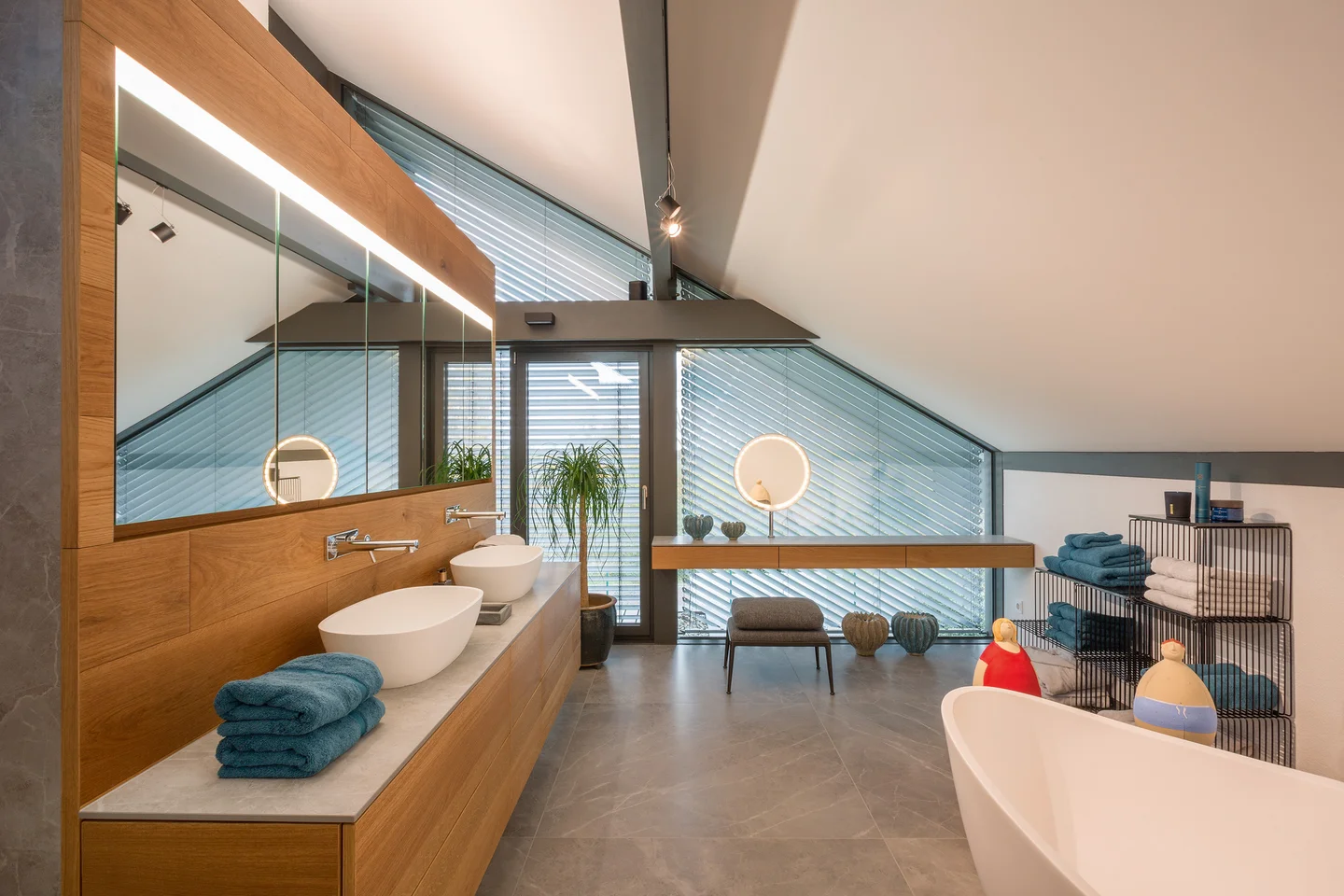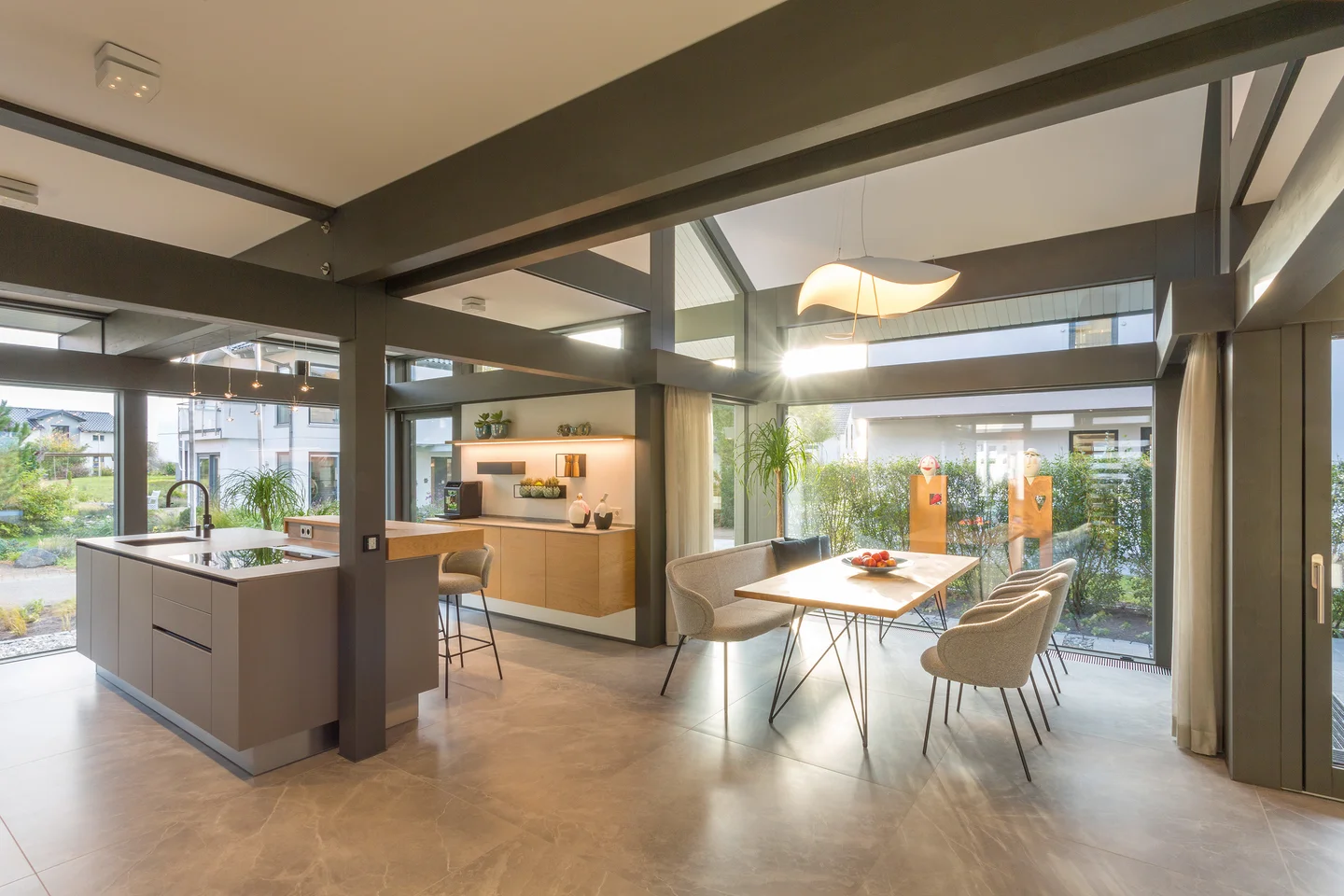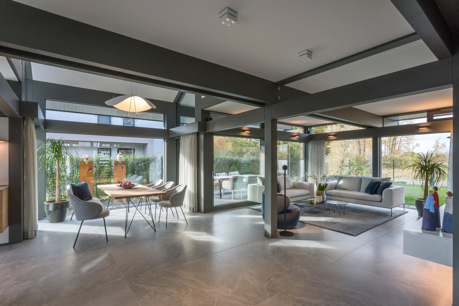 Ankommen, durchatmen, wohlfühlen – zu Hause. Offene Wohnräume, natürliche Materialien und fließende Übergänge zwischen Innen und Außen schaffen eine Atmosphäre, in der der Alltag zur Ruhe kommt. Das Gefühl von Urlaub - Tag für Tag.