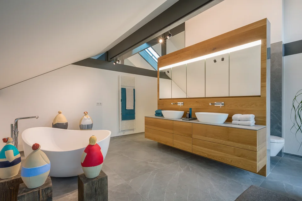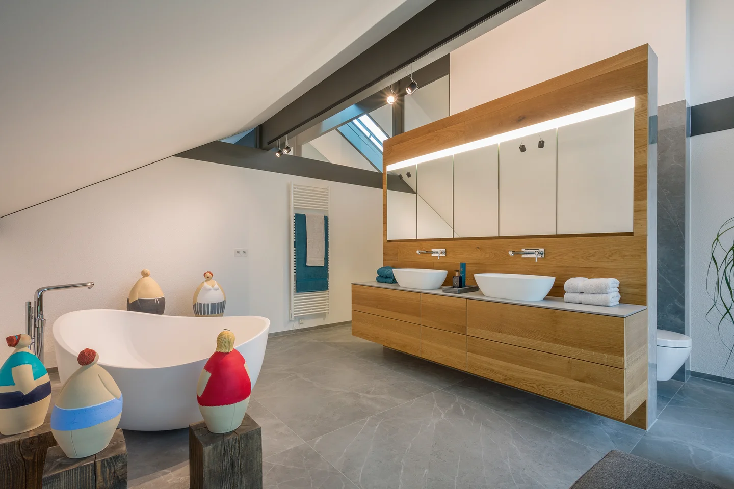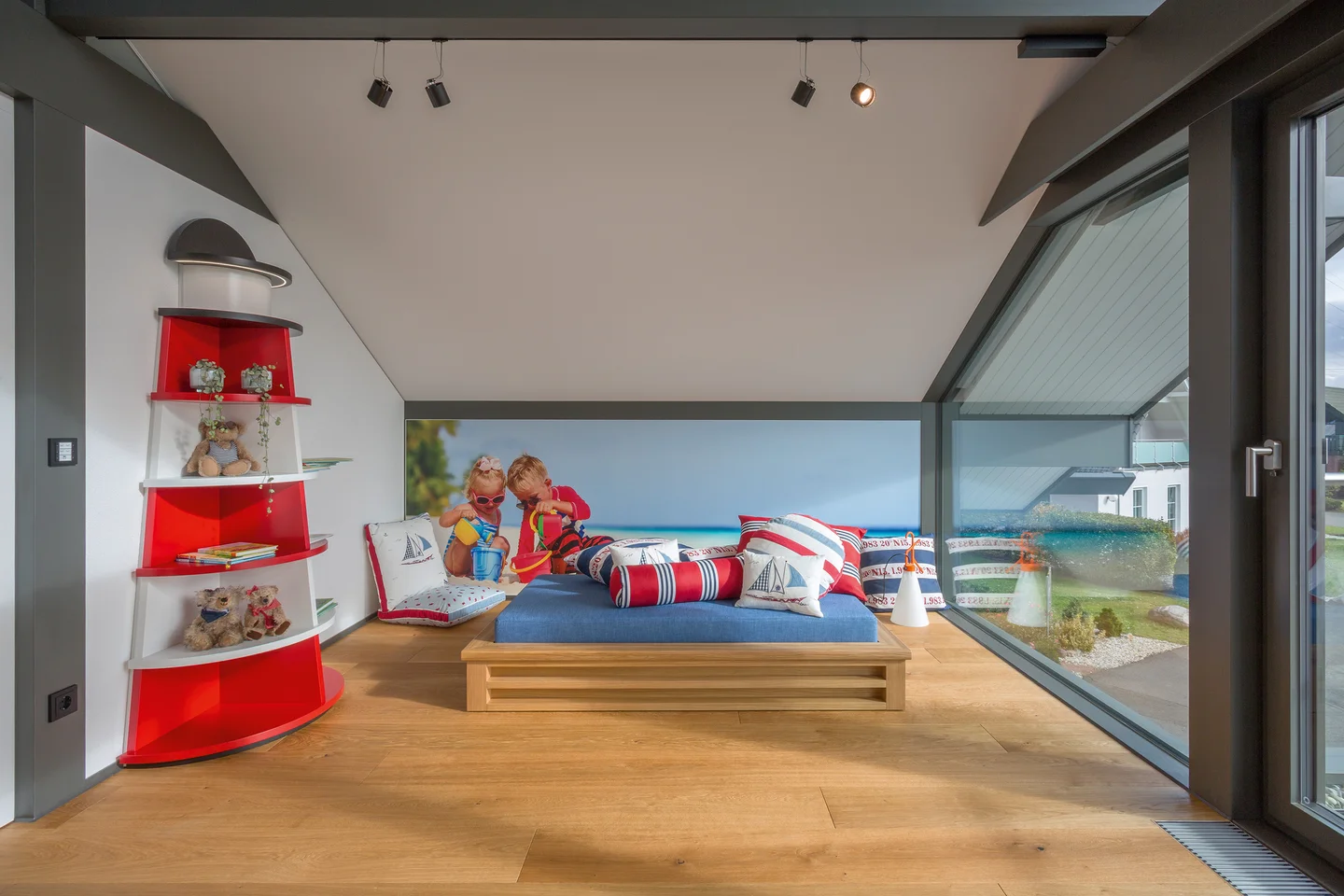Ankommen, durchatmen, wohlfühlen – zu Hause. Offene Wohnräume, natürliche Materialien und fließende Übergänge zwischen Innen und Außen schaffen eine Atmosphäre, in der der Alltag zur Ruhe kommt. Das Gefühl von Urlaub - Tag für Tag.